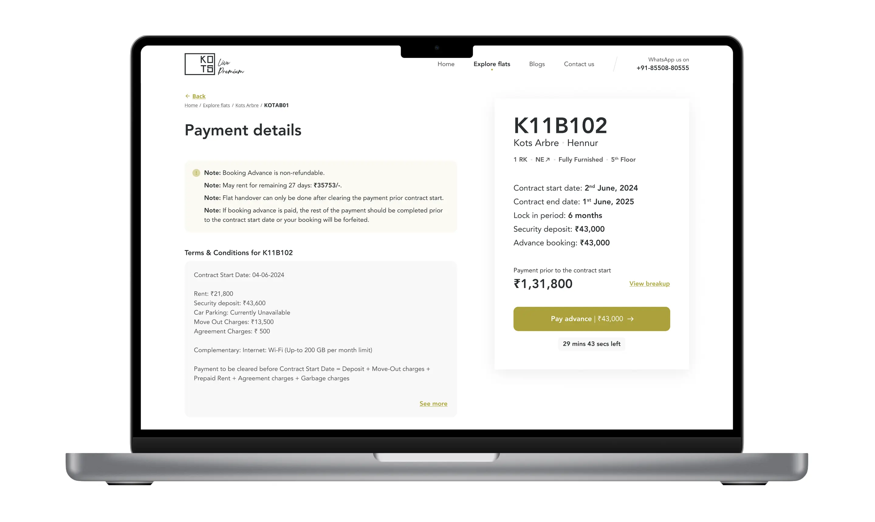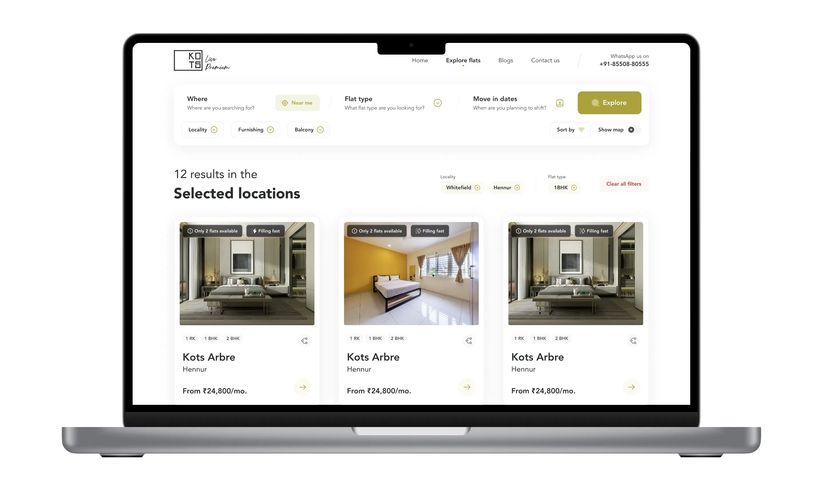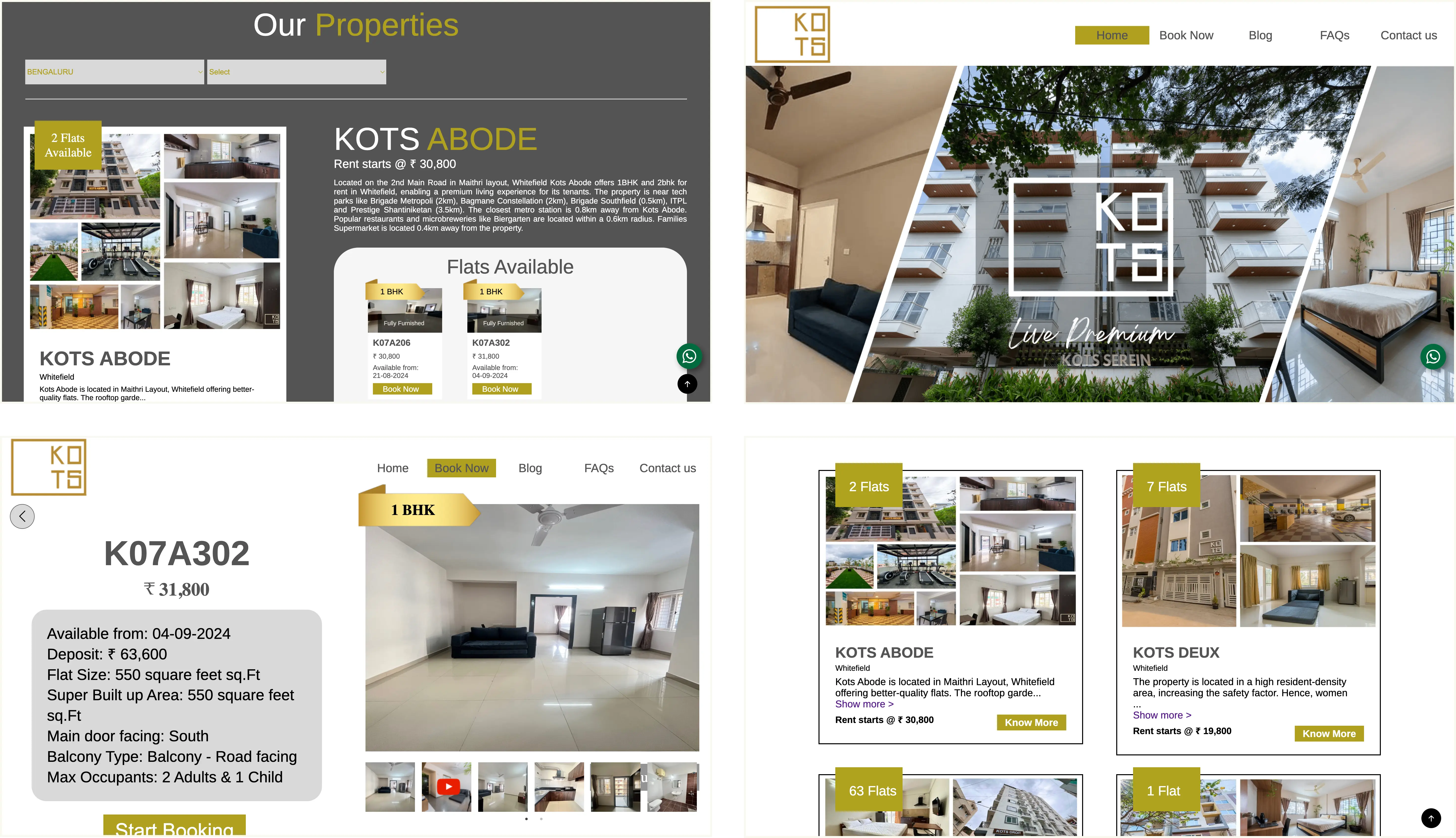 "Kots World relies on its website for flat bookings, but their previous website was ineffective and did not generate enough reservations. Many users found the booking process too long and confusing, making it difficult for them to complete their reservations. Additionally, some customers expressed concerns about the website’s credibility, as it lacked essential details about the flats and apartments. The absence of clear, valuable information made it hard for potential renters to trust the platform, ultimately leading to lower engagement and fewer bookings."