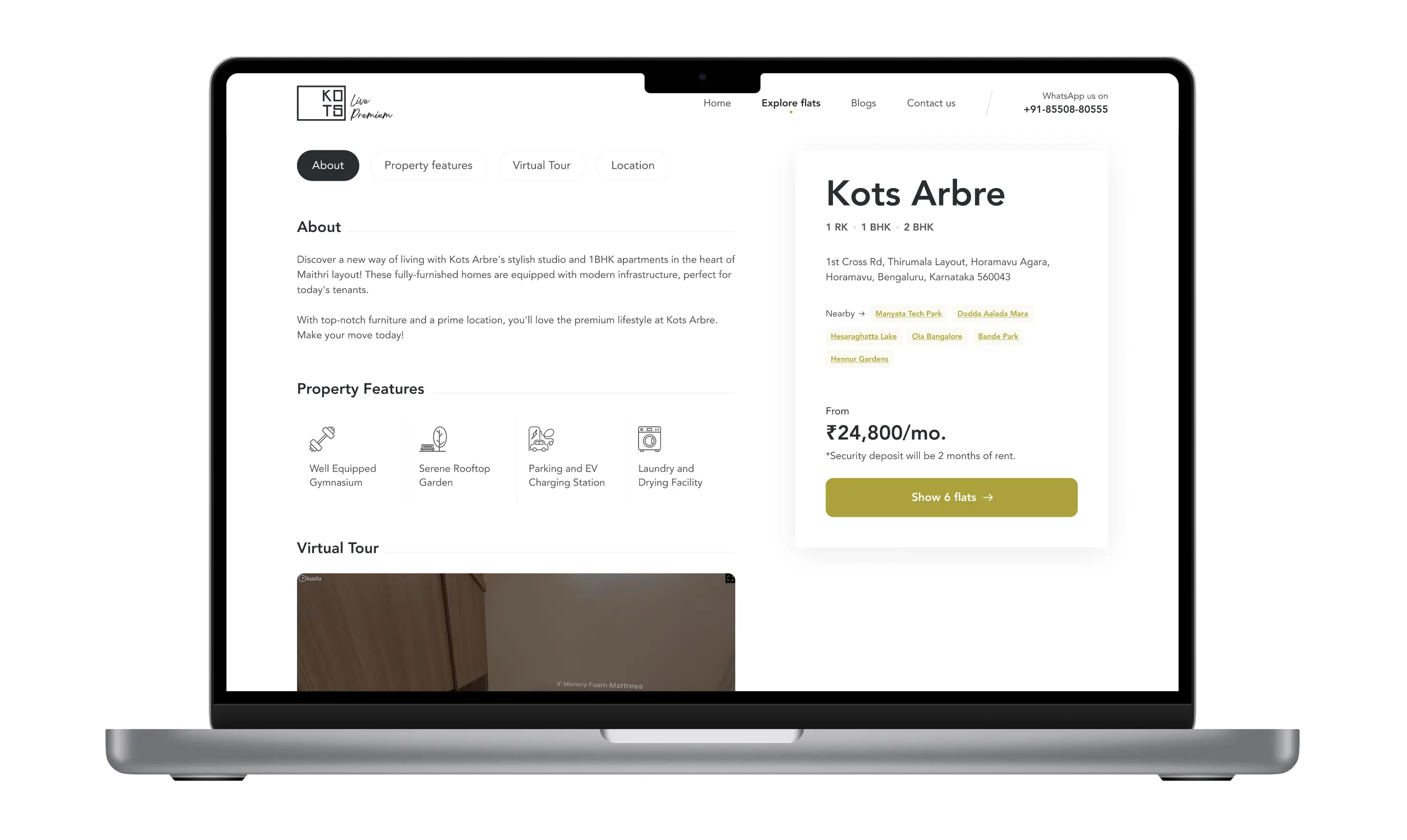 Kots Renting Pvt. Ltd., popularly known as Kots World, is a rental startup based in Bengaluru, India. Their business model revolves around simplifying the rental process for both property owners and tenants. They partner with property owners by leasing entire buildings, transforming these spaces into fully furnished and well-decorated homes, and then renting them out to individuals and families. This approach ensures that tenants get move-in-ready accommodations without the hassle of setting up a new home, while property owners benefit from a steady rental income without worrying about maintenance or finding tenants themselves.